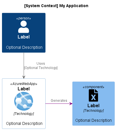 Component(systemAlias, "Label", "Technology", "Optional Description", $sprite=file_excel)